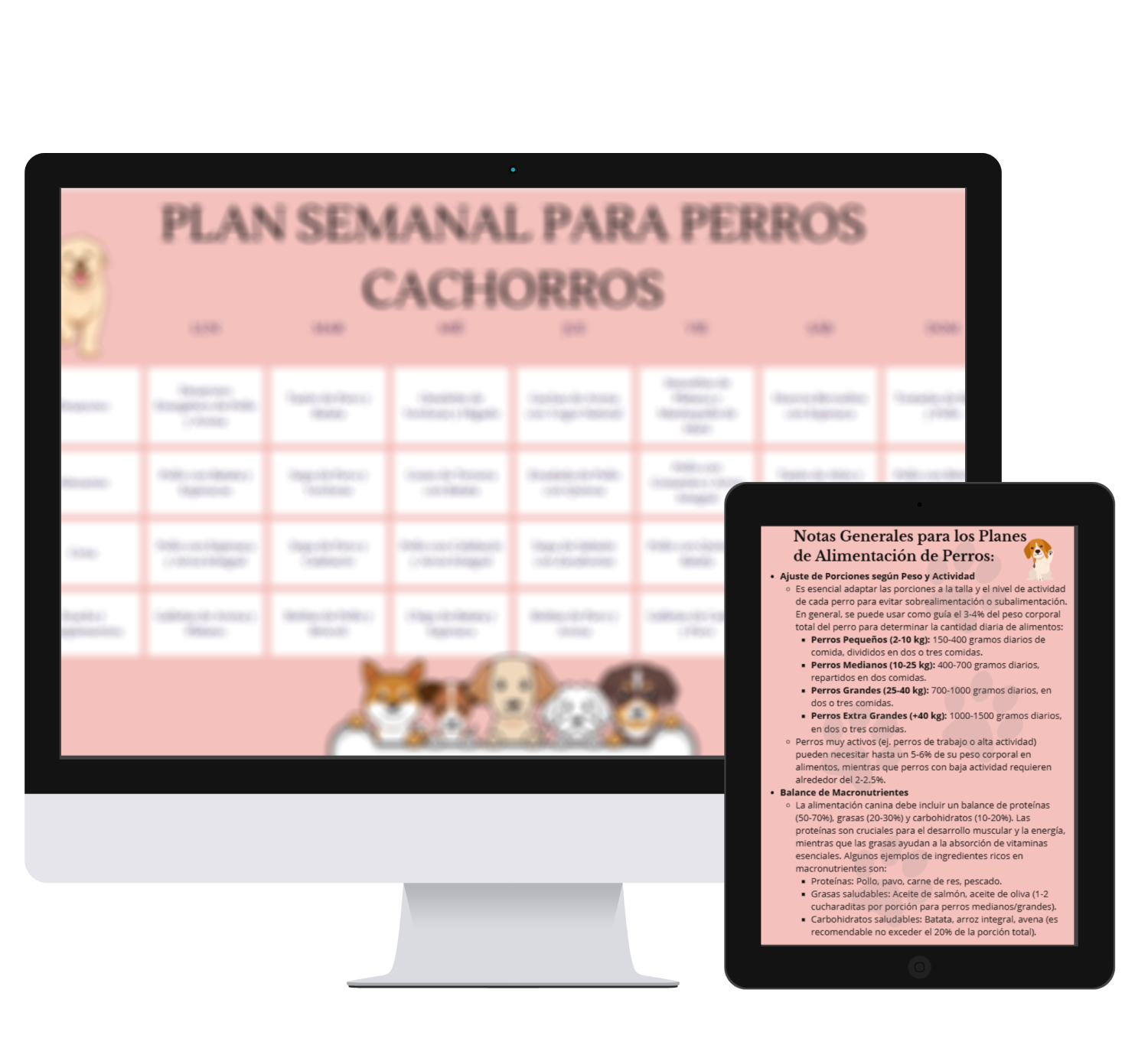 Las recetas están pensadas para personas reales, con rutinas ajustadas. Son simples, rápidas y permiten preparar varias porciones con anticipación. Además, con el bono #8: Plan Semanal de Alimentación Canina, organizar las comidas se vuelve mucho más fácil de lo que crees.