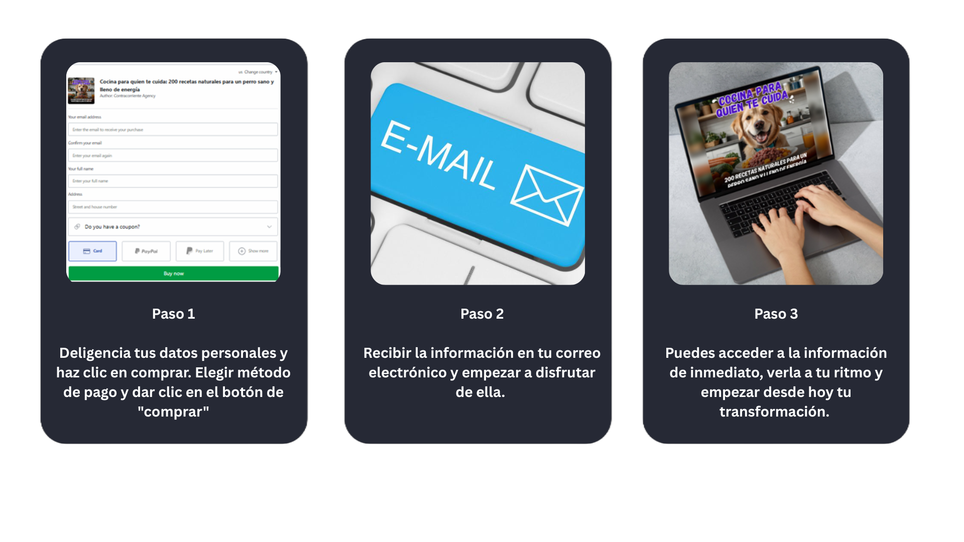 No necesitas ser experta. Con una guía clara, puedes ofrecerle comidas naturales que podrían darle más energía, mejorar su digestión y acompañarlo con hábitos que sumen a su bienestar. Porque lo que más deseas es verlo feliz.